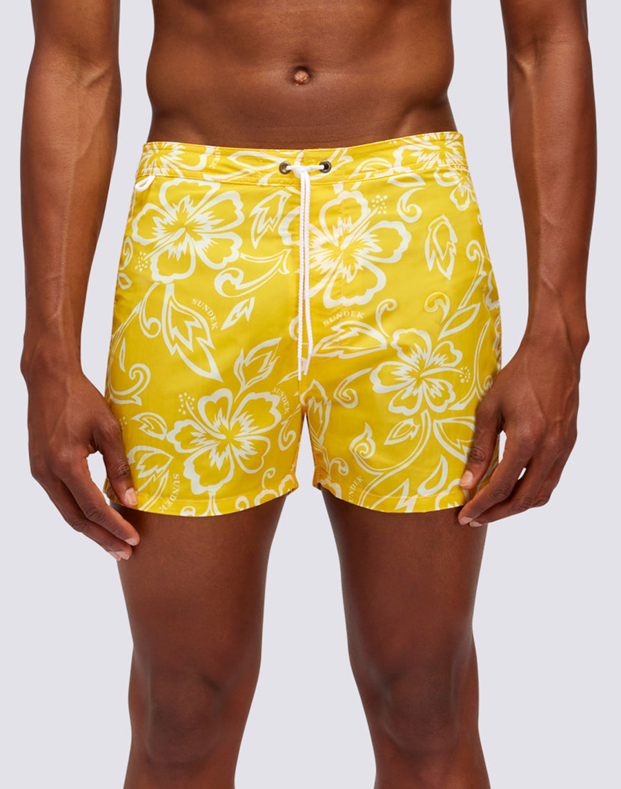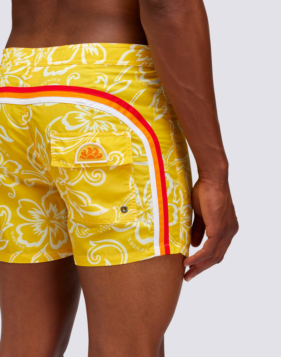SHORT FIXED WAIST SWIMSHORTS ICONIC TAFFETA WITH VINTAGE PRINT HIBISCUS SK23