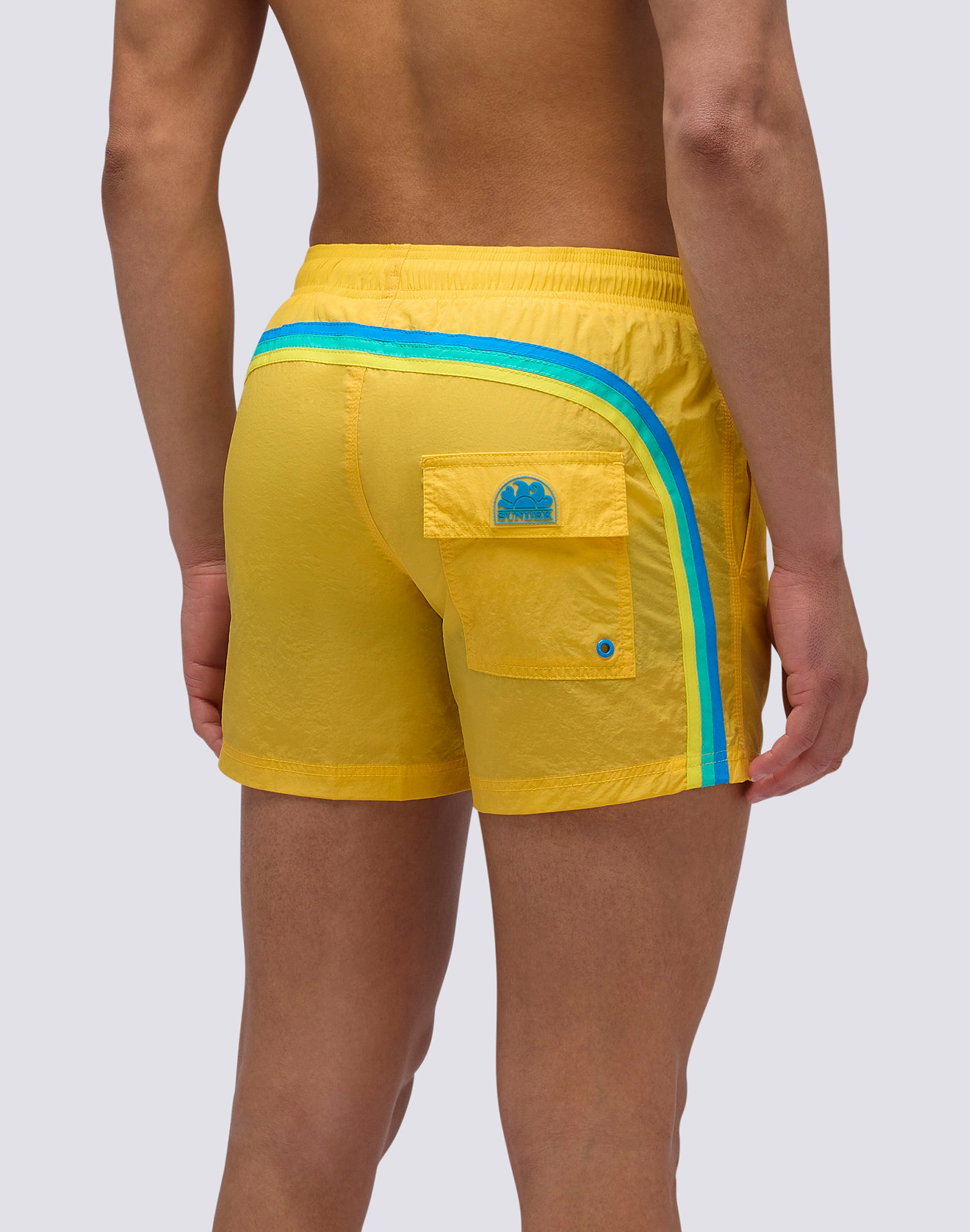 SHORT CRINKLED SWIM SHORTS WITH AN ELASTICATED WAISTBAND