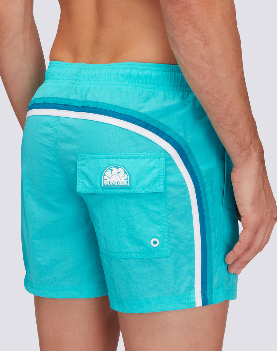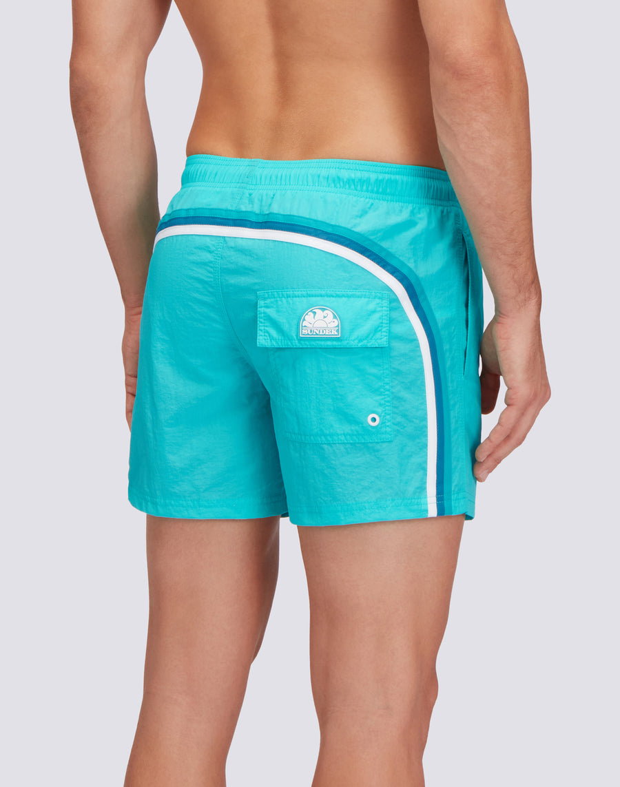 SHORT CRINKLED SWIM SHORTS WITH AN ELASTICATED WAISTBAND