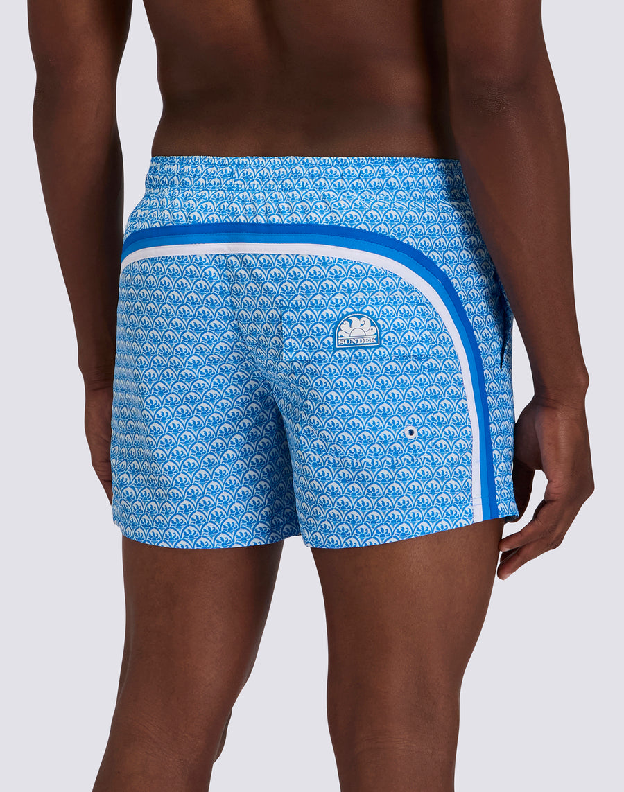 SHORT SWIMSHORTS WITH ELASTICATED WAIST REPREVE® RECYCLED POLYESTER WITH SUNSET MAIOLICA PRINT