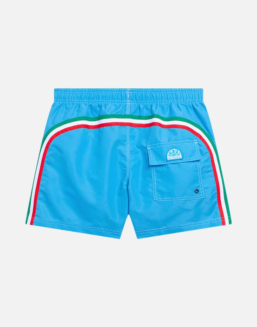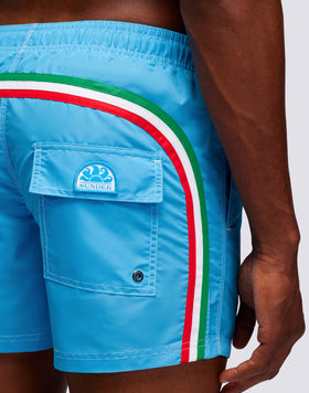 SHORT SWIM SHORTS WITH AN ELASTICATED WAISTBAND ICONIC TAFFETA ITALIAN FLAG