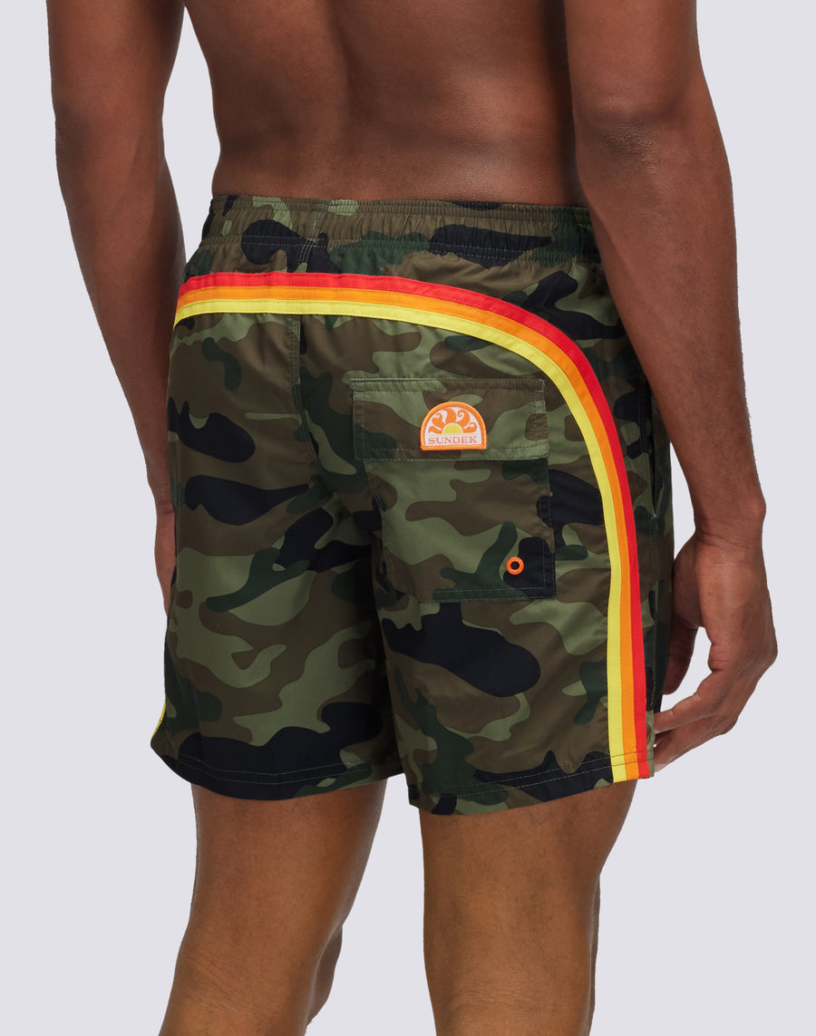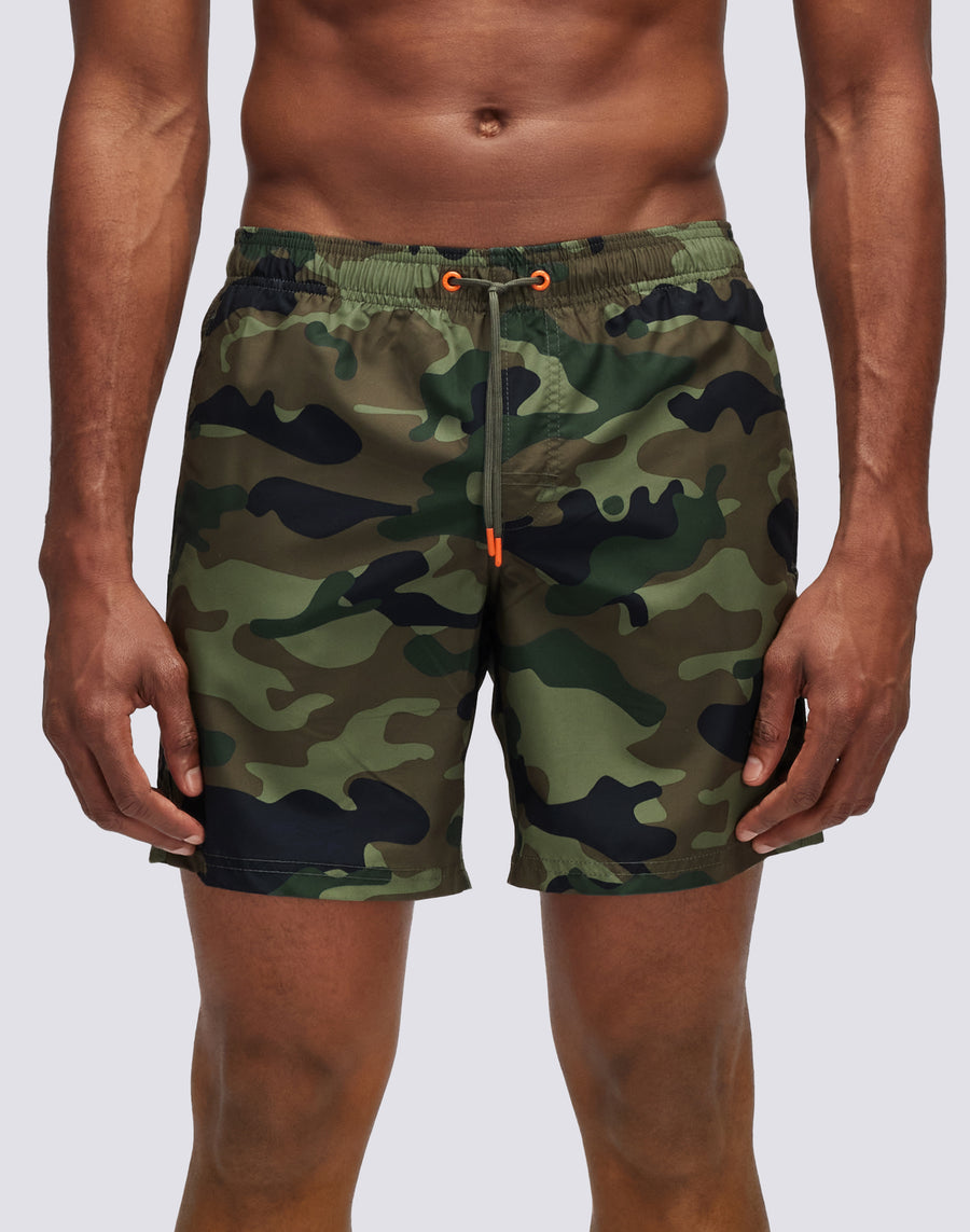 CAMOU PRINT SHORT SWIMMING COSTUME WITH ELASTICATED WAIST