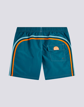All of Sundek's timeless style in this mid-length, elastic-waisted boardshort. Stylish, comfortable, meant to last vacation after vacation: this is our classic boardshort with drawstring waist and contrasting rainbow back, made in our historic lightweight, quick-drying, durable nylon taffeta fabric with three-needle stitching for extra reinforcement. Length 41 cm (size M), measured on the outside of the leg.