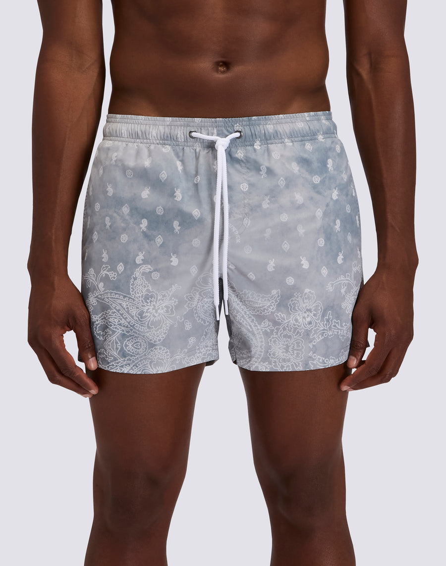 MEN'S SHORT SWIMSUIT WITH ELASTIC WAIST PAISLEY BANDANA PRINT IN RECYCLED POLY