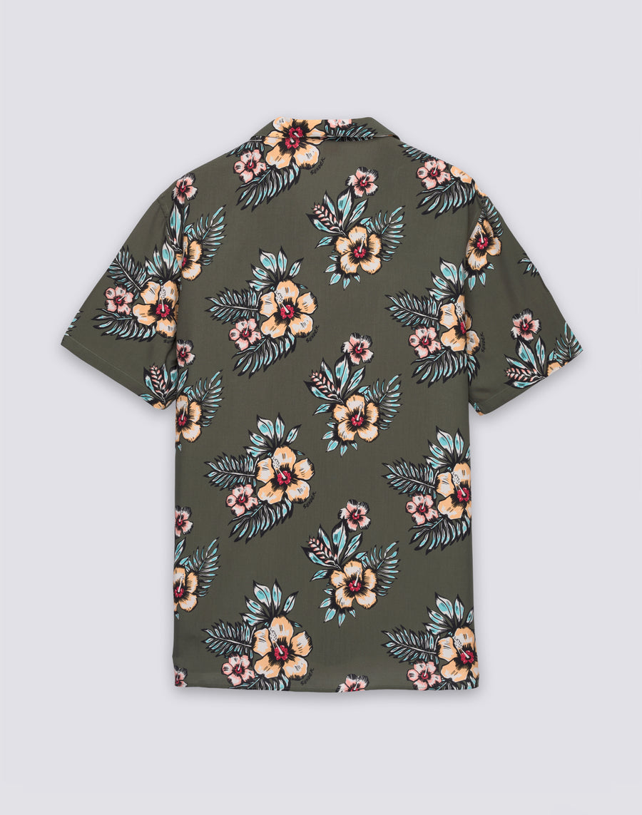 Men's short-sleeved printed bowling shirt in viscose poplin. Relaxed fit.