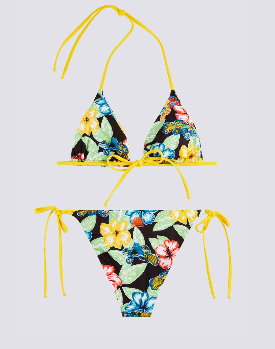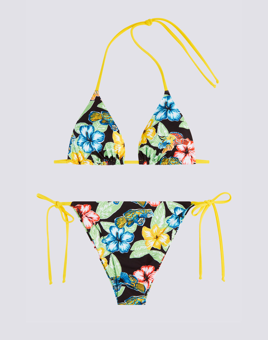 BLACK FLORAL ANIMAL FISH PRINT BIKINI