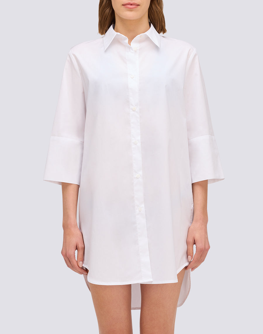The short cotton poplin shirt is the oversized garment that solves everything: crisp, breathable fabric, practical length, long sleeves for coverage. For those looking for a relaxed, casual style. Loose and relaxed fit that never feels tight. The oversized cut works for everyone: comfortable, casual, easy to wear. Absolute freedom of movement.