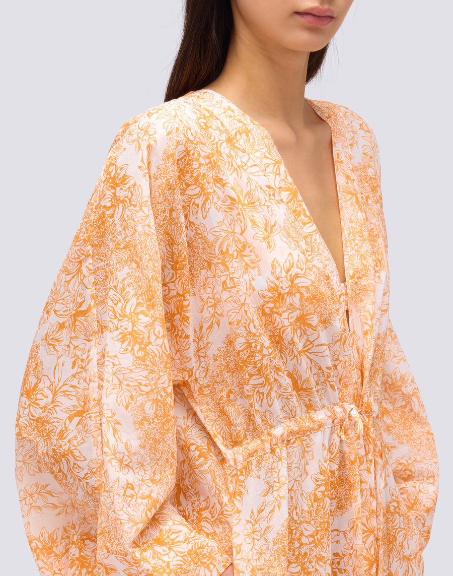 FLEUR DE JOIE PRINT LONG KIMONO DRESS