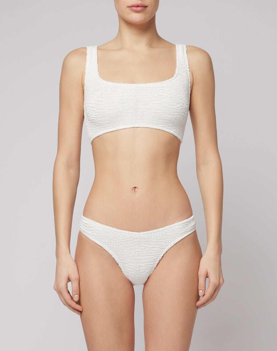 High-waisted briefs in tubular embossed fabric, which ensures freedom of movement and maximum comfort. Can be combined with the matching top, sold separately.
