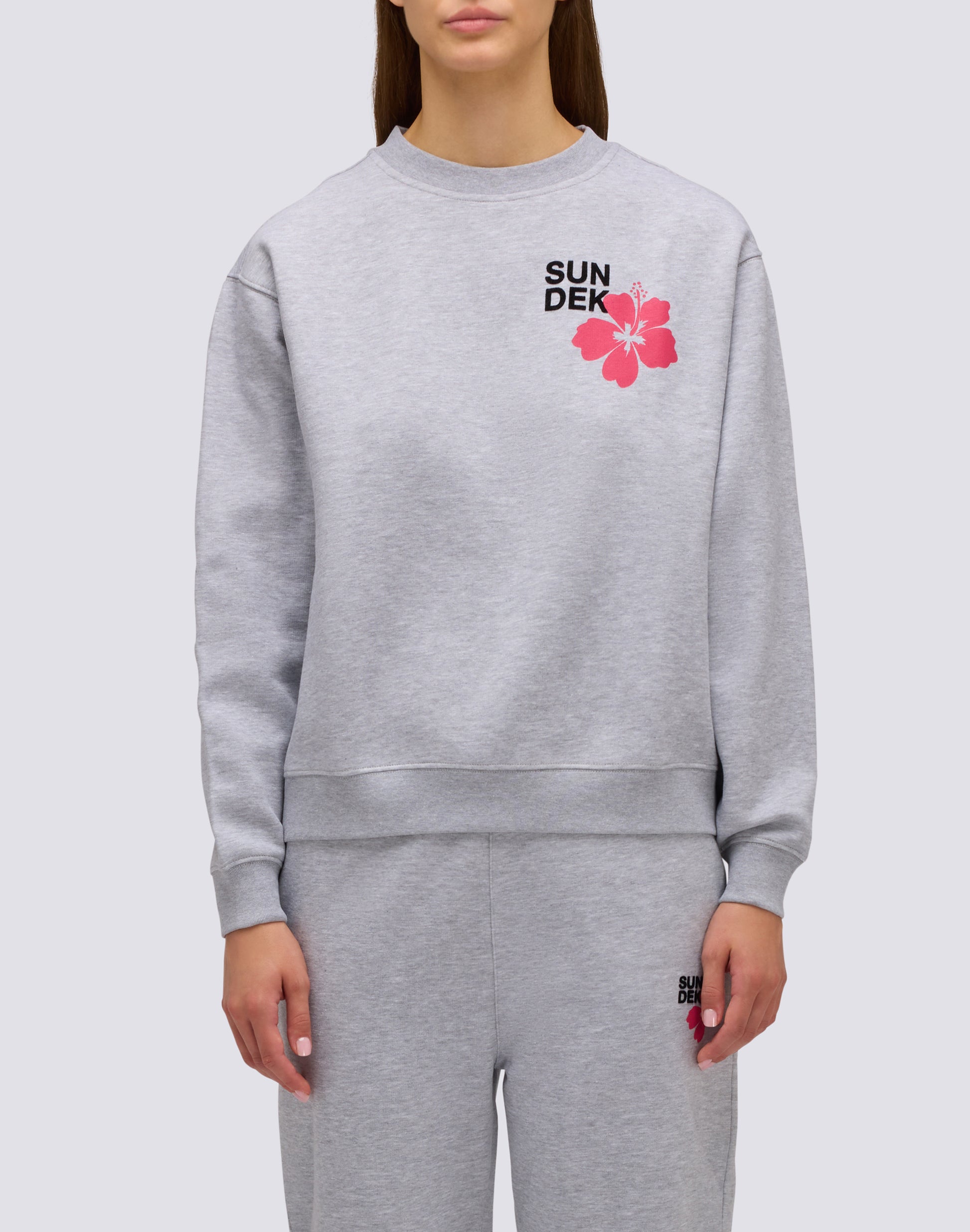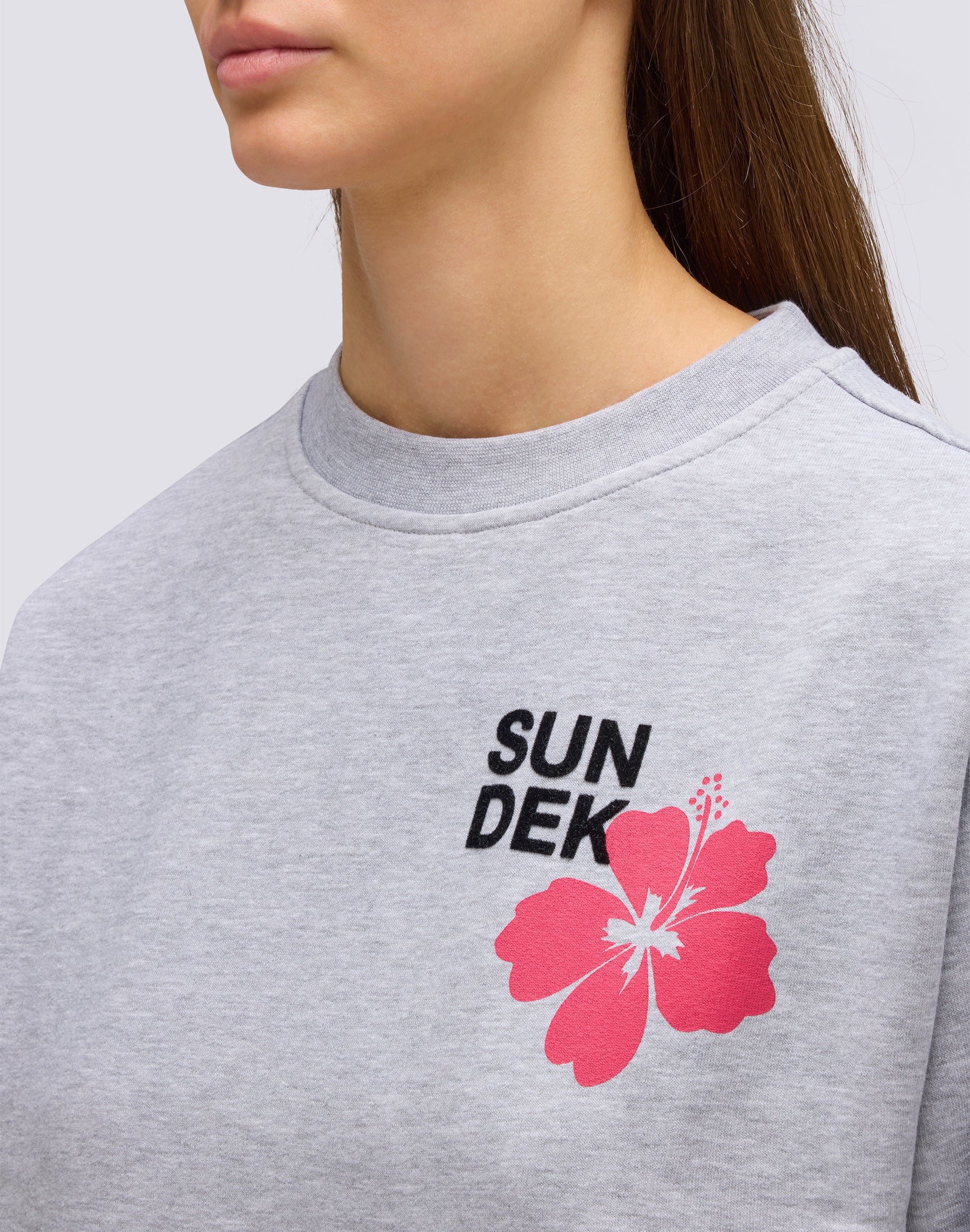 This women's crewneck winter sweatshirt offers warmth and comfort on cold days. The design is embellished with a printed SUNDEK logo and a delicate floral detail, making this versatile and feminine piece ideal for a casual yet refined look.