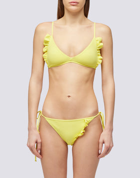 This women's beach brief offers a touch of refinement thanks to the piquet fabric and the ruffles arranged on one side. Comfortable and sophisticated, the design with adjustable sides offers the perfect fit for a non-trivial beach look. To be combined with the top sold separately.