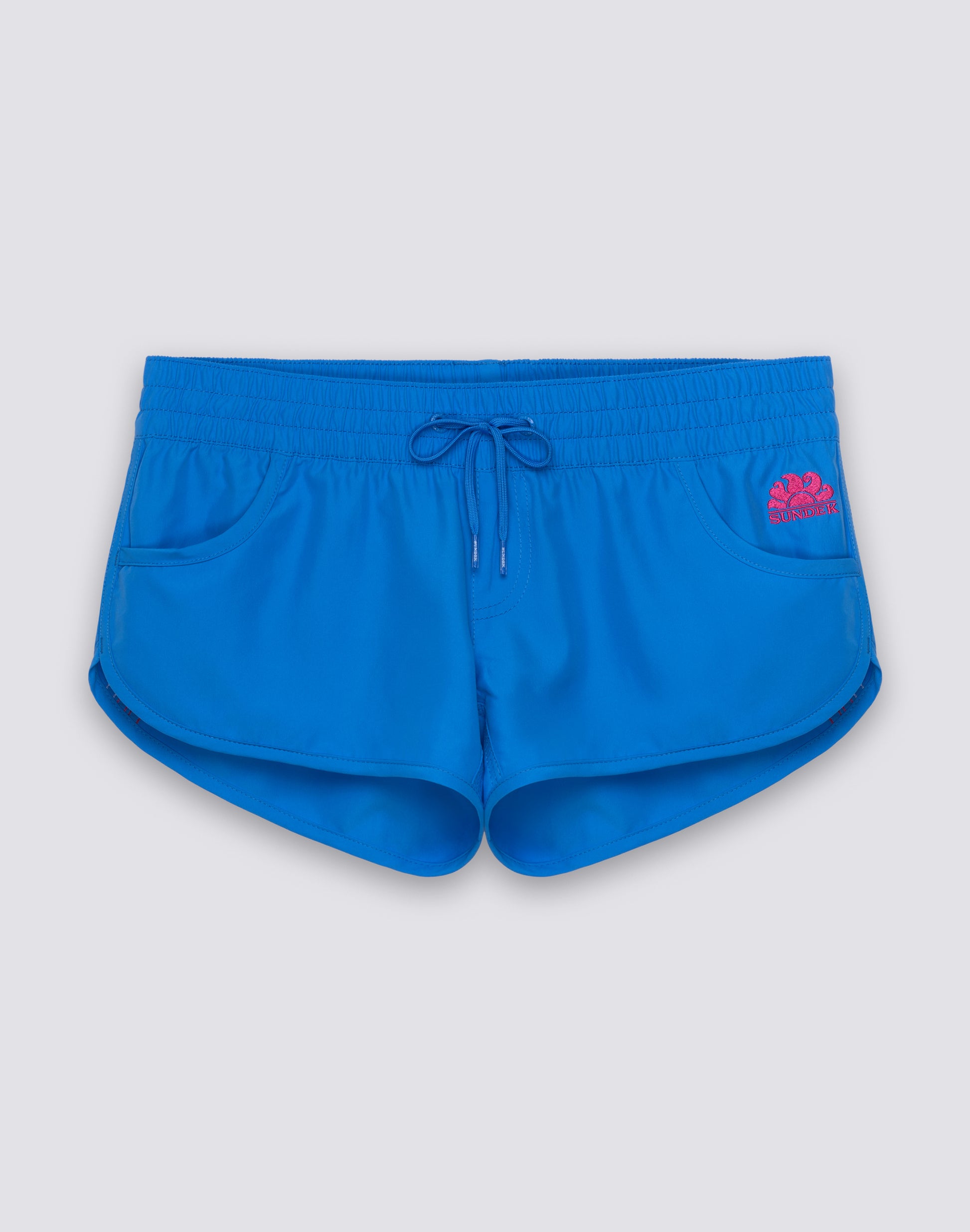 Made from eco-friendly Repreve® fabric, this women's shorts is available in various colors. The back features the unmistakable Sundek rainbow, for a unique style.