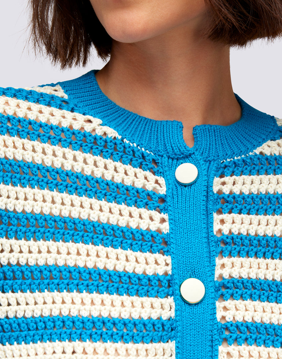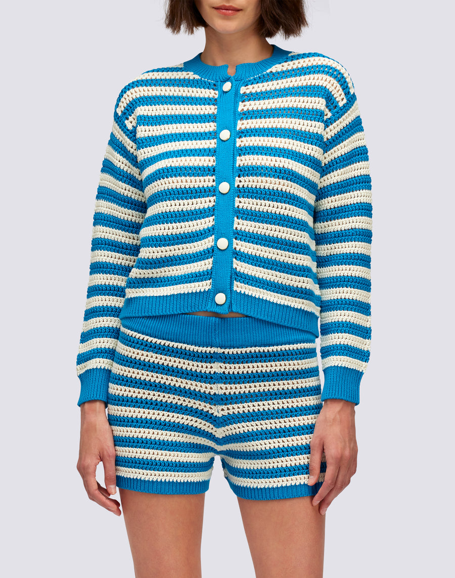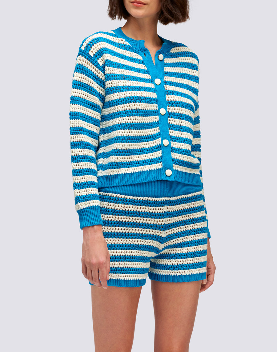 Made from soft cotton knitwear it will keep you comfortable and fashionable. This bolero cardigan can be worn with its matching shorts.