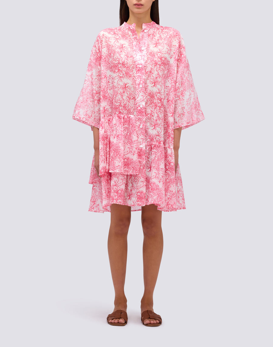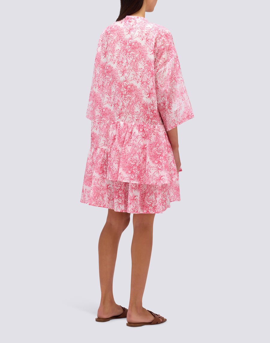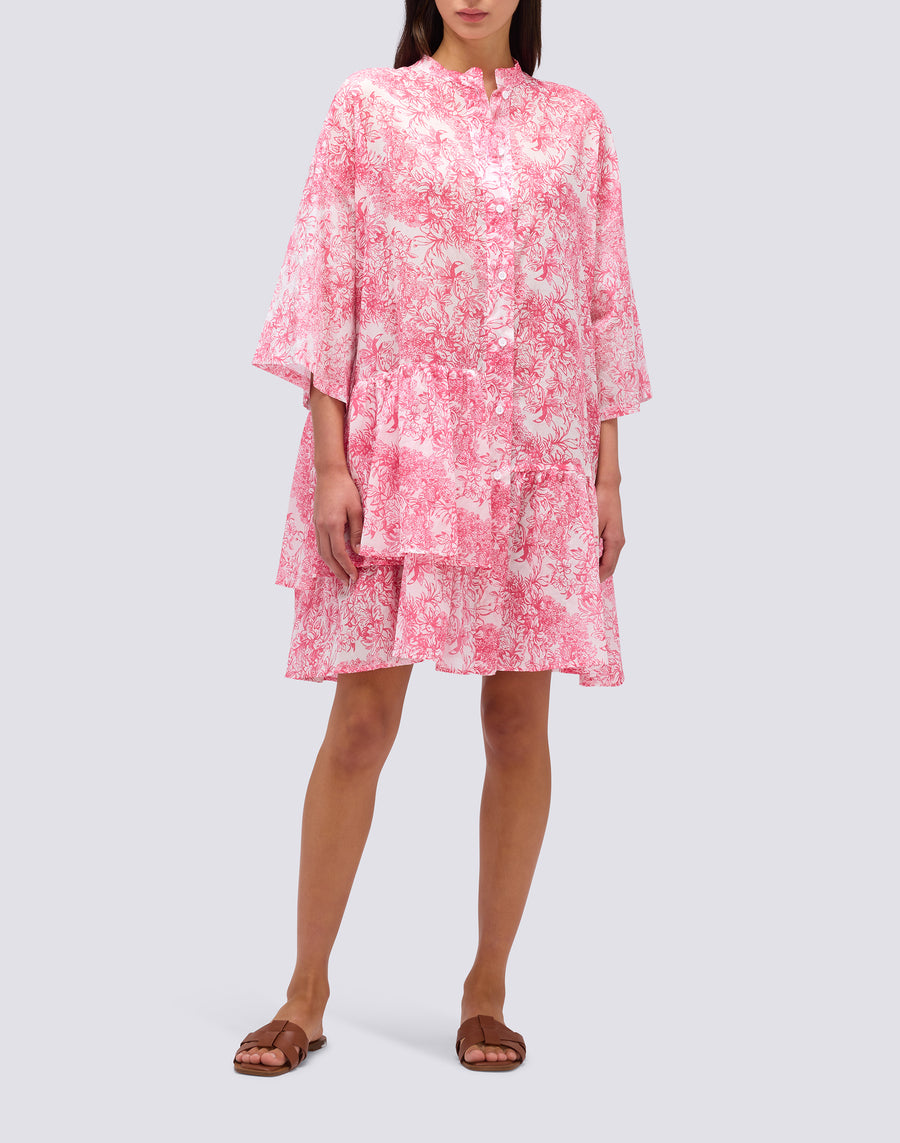Create a romantic and floral look with this Fleur de Joie print dress. The bright colors and lightweight fabric will make you feel comfortable. Perfect for a special occasion or a casual day.